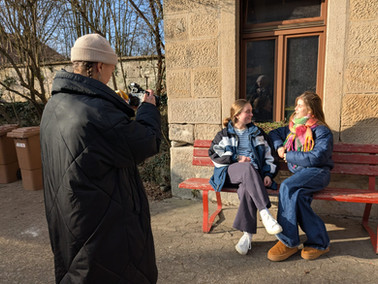 Als Erstes durften wir einige Mitglieder der SMV interviewen und waren sehr beeindruckt von den starken Antworten der Schüler:innen und ihrem Einsatz für ihre Mitschüler:innen und die Schule. Danach drehten wir draußen noch Material für die B-Roll: Filmmaterial, das gezeigt wird, während der Ton vom Inteview läuft. Es hat wirklich Spaß gemacht, diesem tollen Team beim Pizza backen, Ball spielen und im Gespräch zuzuschauen!