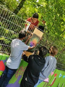 Mauerprojekt - Grundschule Kooperation Kunst - KuBiKo - Tinyhouse & Bauwagen und all seine erzählerischen Skulpturen