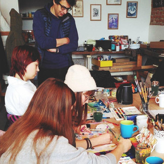 wie jedes Jahr hat sich unser Kunstintensivkurs auch dieses Jahr bei Tee und Plätzchen an die Arbeit gemacht und hat zusammen mit dem Künstler und Designer Raoul Kaffka die Weihnachtskarten für die Inklusive Akademie gestaltet.